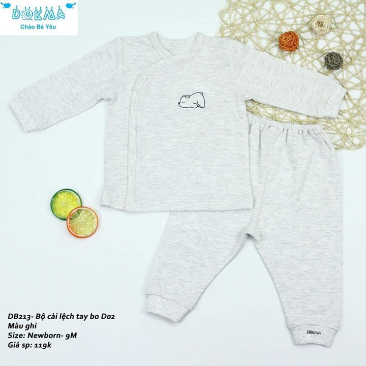 Bộ sơ sinh cài cúc lệch cho bé từ 0-9 tháng tuổi.